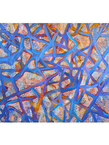 이번 전시에서 회화는 기도나 명상에 가까운 행위로 드러난다. 반복되는 붓질과 점의 축적은 즉흥적으로 보이지만, 그 이면에는 질서와 구조적 리듬이 작동한다. 통제와 우연, 자유와 규율은 서로를 배제하지 않은 채 긴장 속에서 공존한다. 하나의 화면은 작가의 신체, 의식, 감각이 수렴된 장으로 형성된다. 화면은 언제나 ‘완성’이 아닌 ‘진행 중’의 시간으로 열려 있다. ‘별’이라는 형상을 통해 희망이나 위로를 전달하는 상징을 넘어, 생명성과 관계의 가능성을 사유한다.